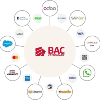 Integrate BAC Credomatic with any software Seamlessly connect your platform with the tools you already use and streamline your processes in real time. Our solution offers fast and secure integration tailored to your company’s specific needs.